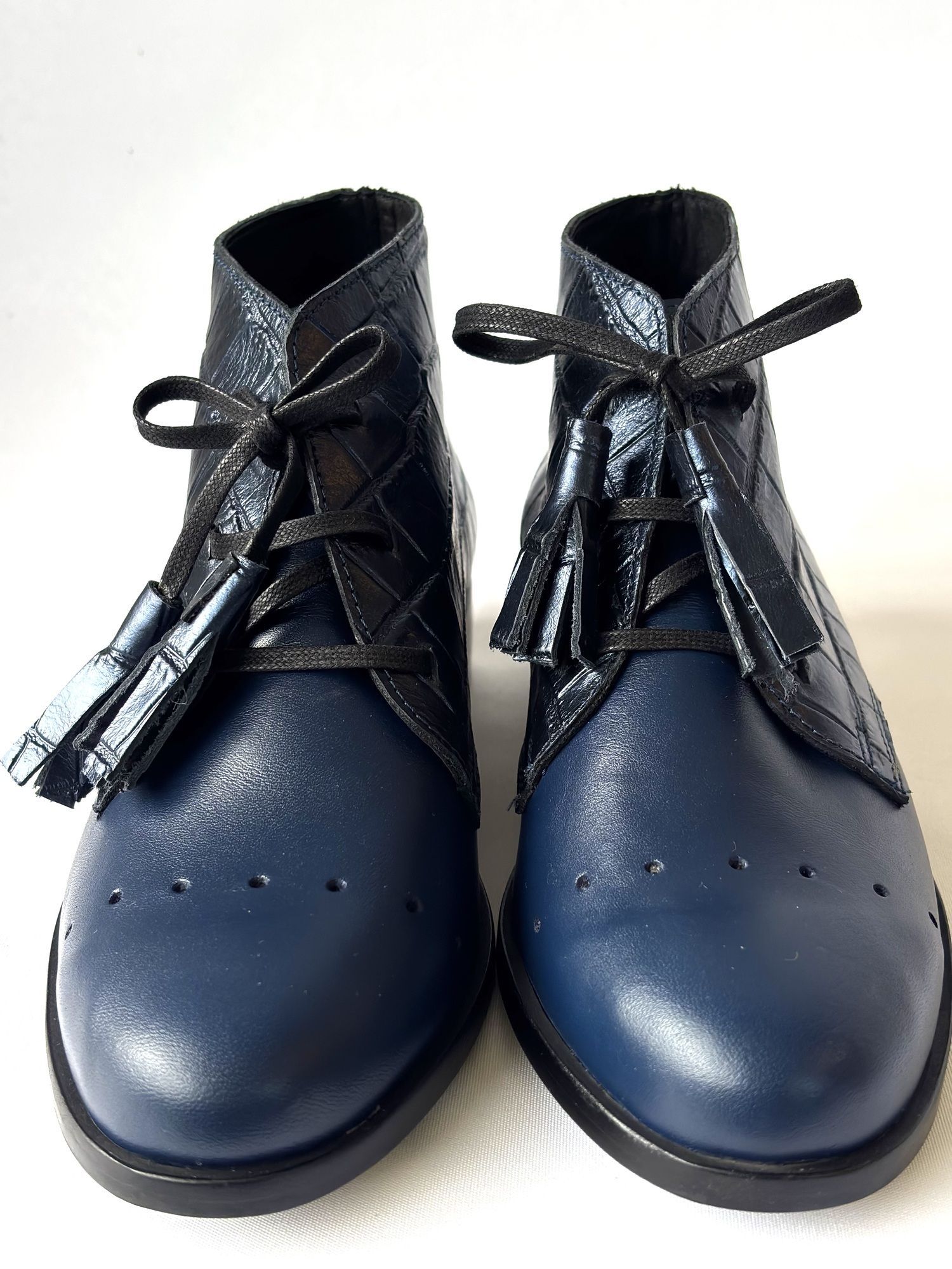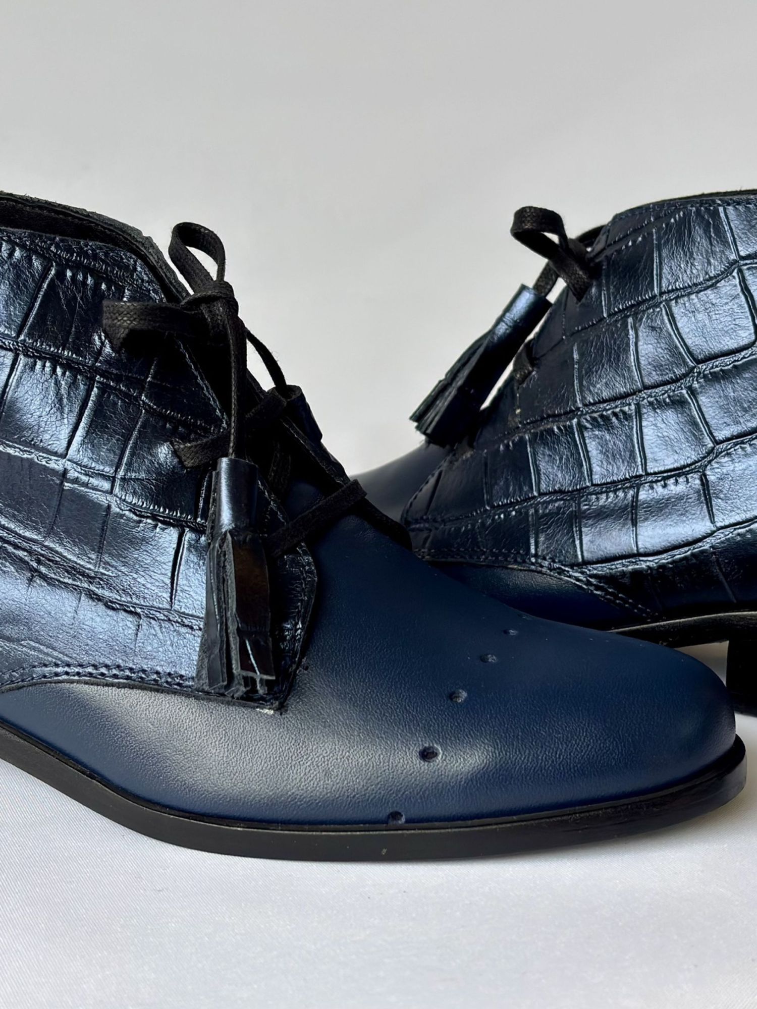 $80.991Botines de cuero azul con textura croco tornasol