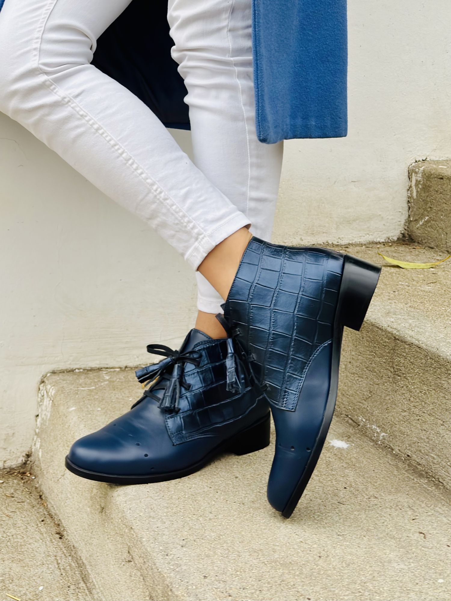 Con cordones delanteros para un ajuste perfecto y un pequeño taco cuadrado que aporta comodidad y altura sutil, son ideales para acompañarte todo el día con distinción.