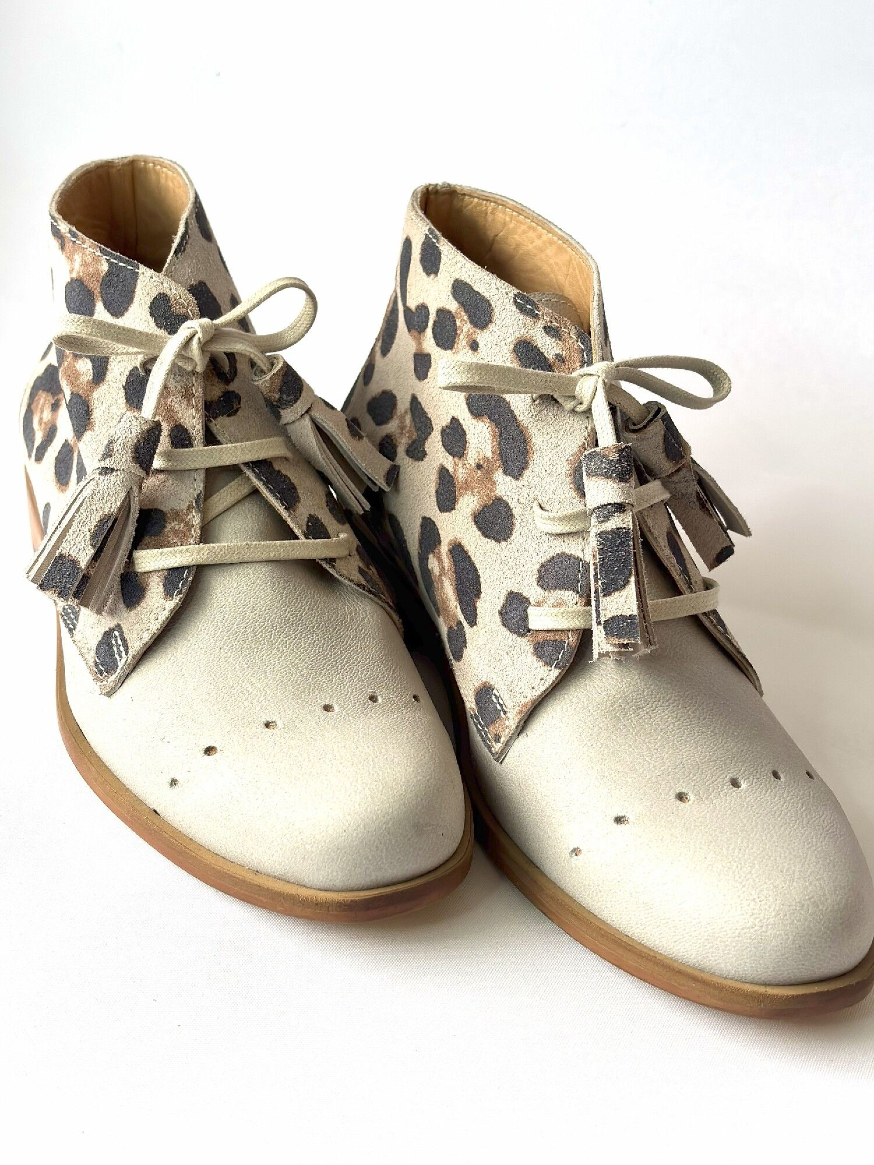 Un diseño atrevido y femenino que combina la suavidad del cuero humo con el toque salvaje del estampado leopardo. Modernos, versátiles y llenos de personalidad, son el complemento ideal para transformar un look casual en uno lleno de estilo.