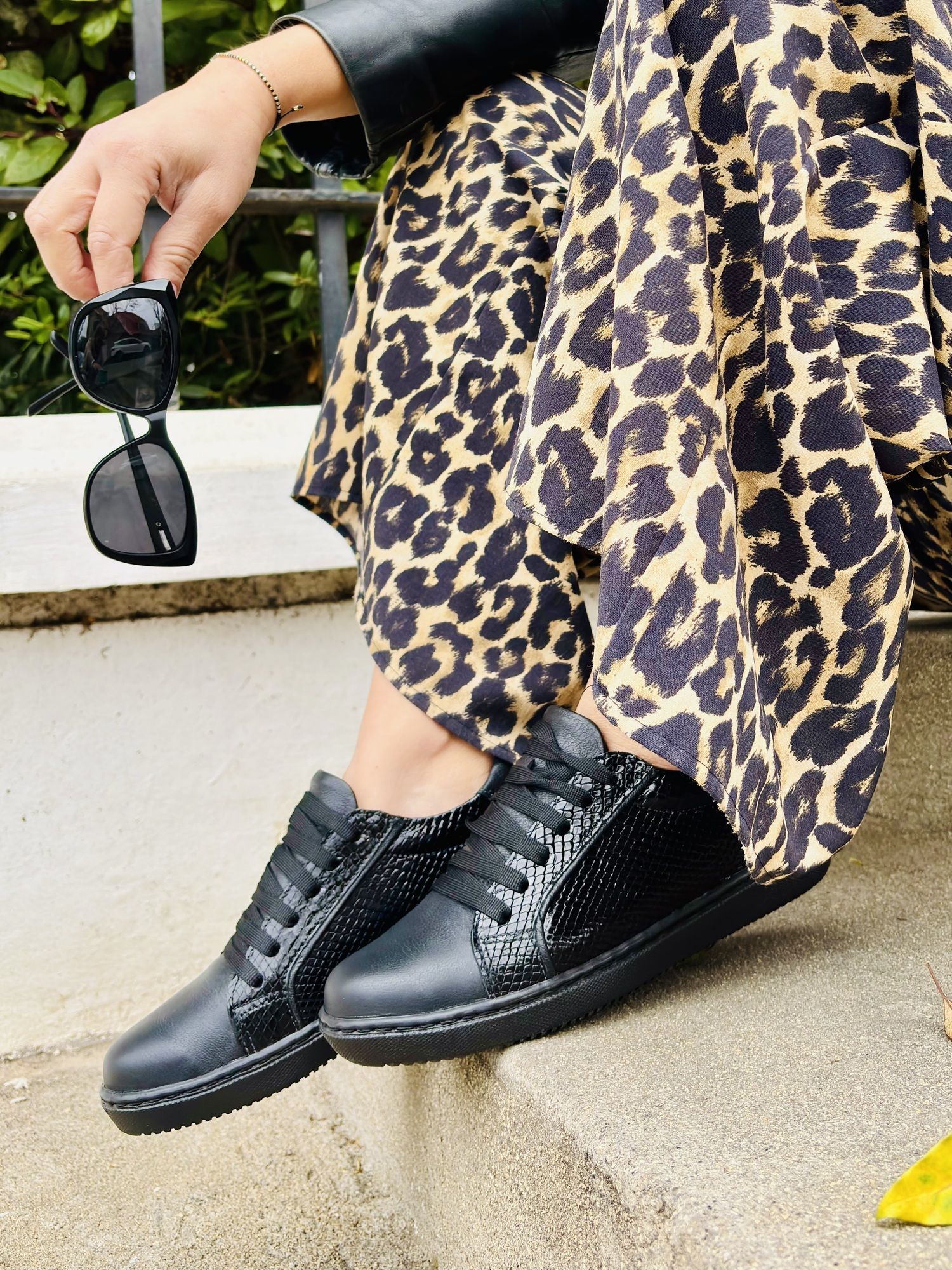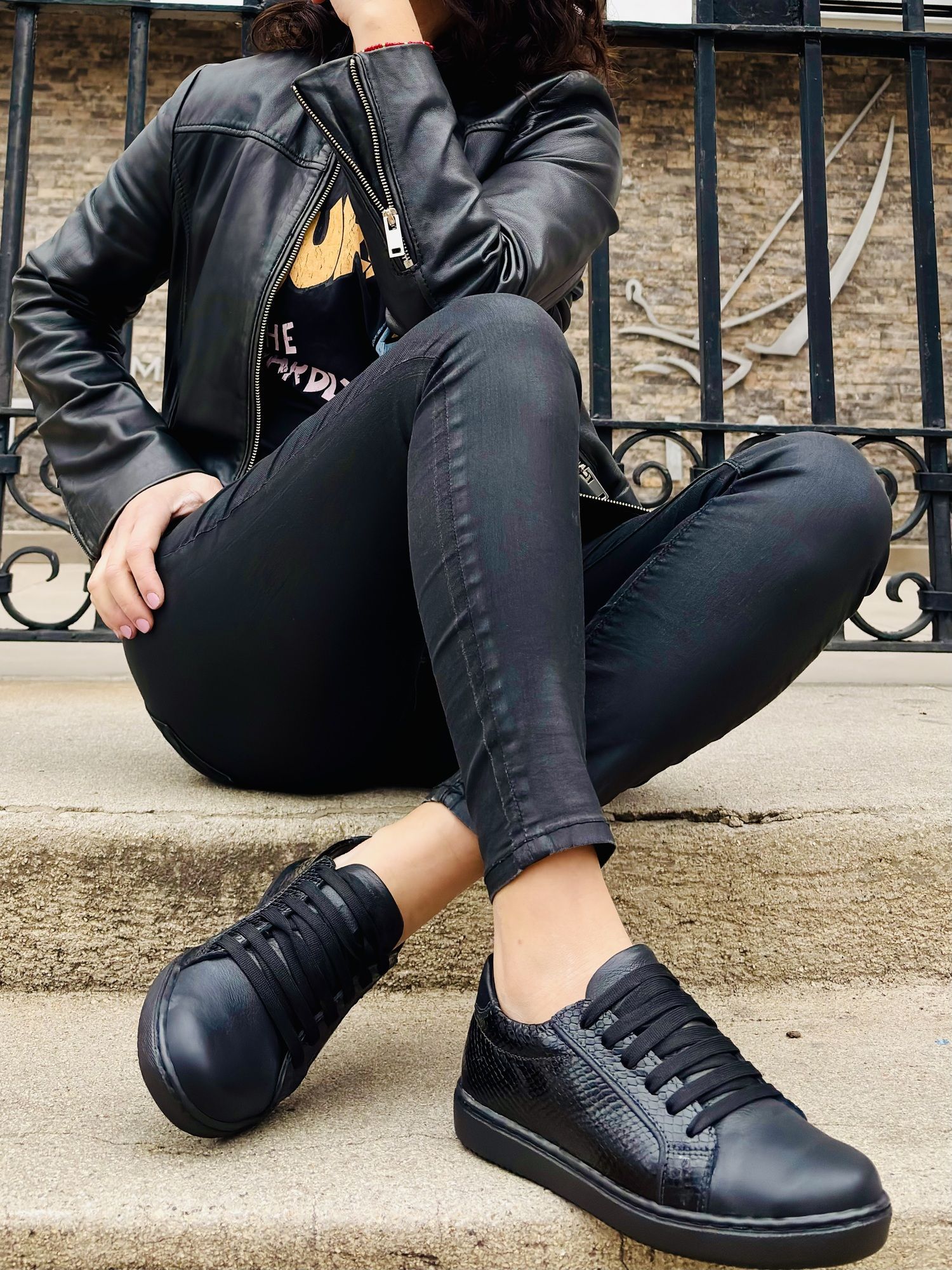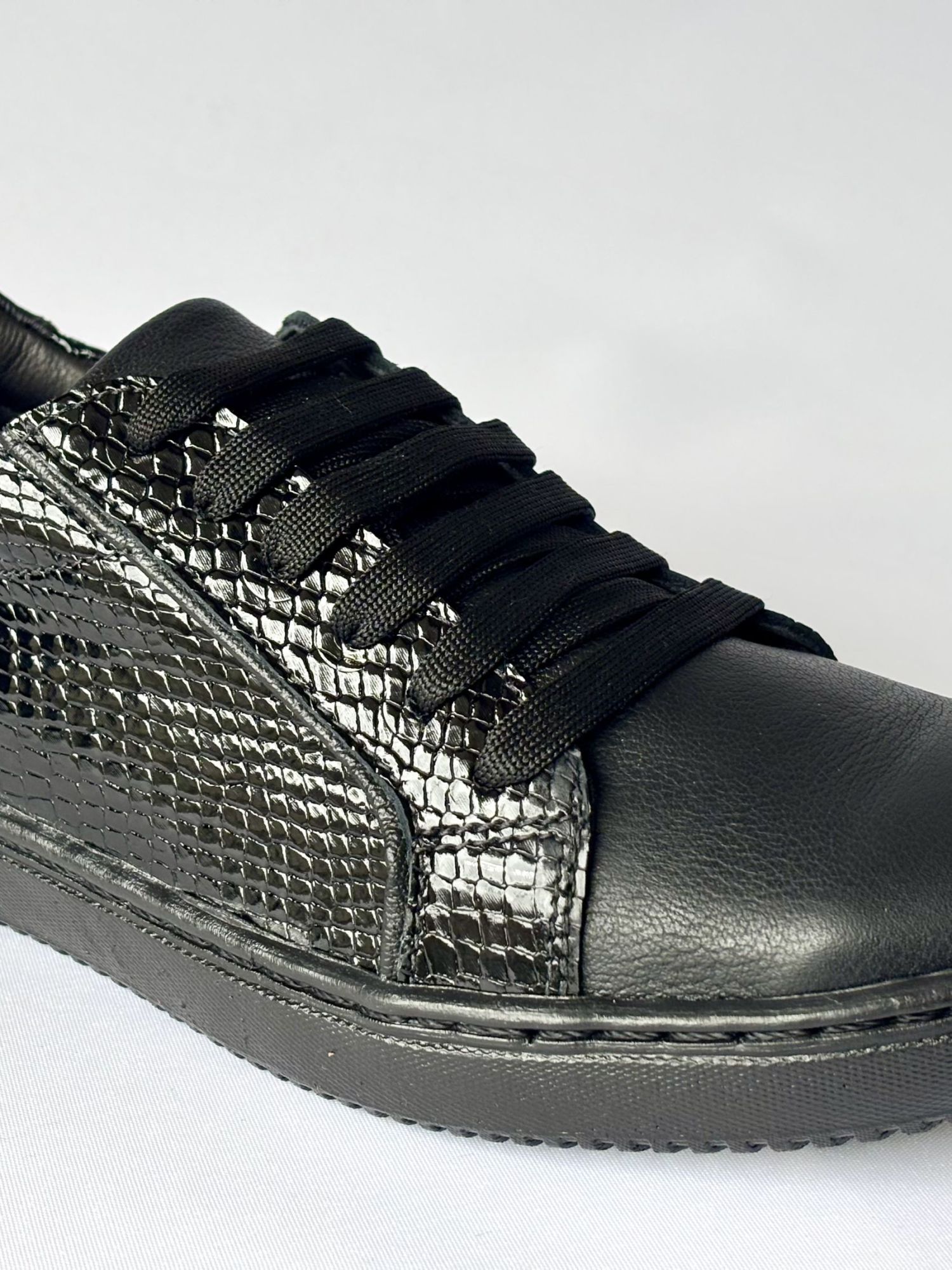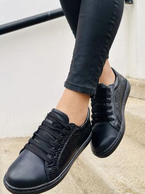 $54.743Zapatilla urbana de cuero negro con mix de texturas